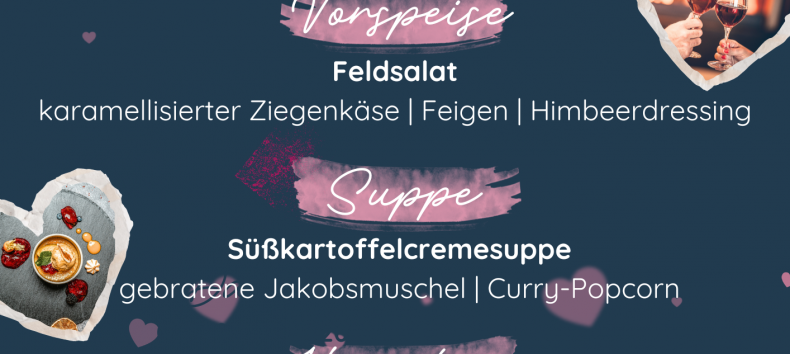 Surprise your loved one with an evening full of romance, pleasure and togetherness. A stylish 4-course menu with accompanying wines, atmospheric lighting and seductive aromas awaits you in an exclusive ambience.