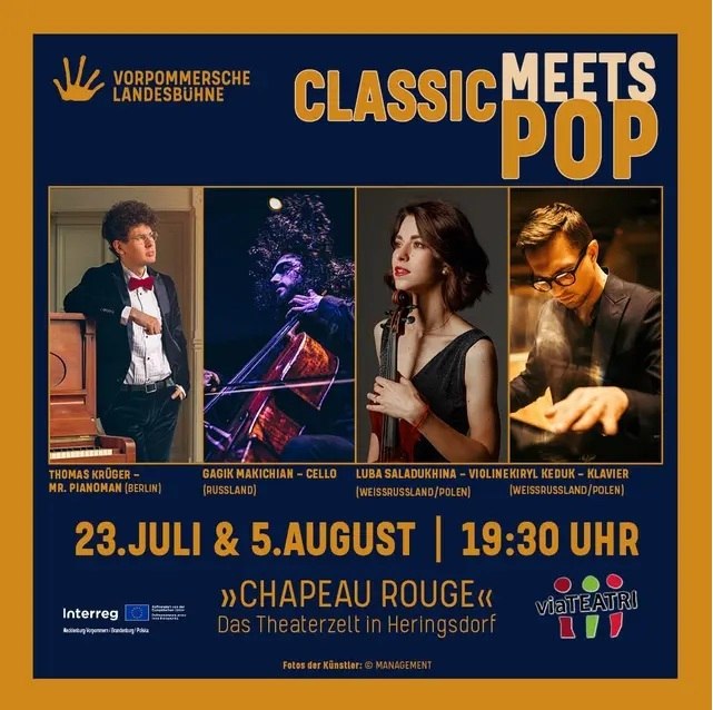 German-Polish cultural summer as part of the viaTEATRI theater network with international musicians from Poland, Germany, Belarus and Russia: Vivalis Project with Luba Saladukhina (violin), Kiryl Keduk (piano) and Gagik and Thomas Krüger "Mr.Pianoman"