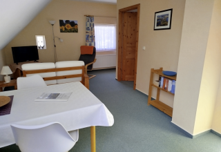 The apartment is located on the upper floor of a residential house directly opposite the church in the middle of the idyllic village of Carwitz. The apartment has a separate bedroom, a shower room and a living room with mini kitchen, dining area and sitting area. On the property behind the house is space for your car, also bicycles and paddle boats can be parked here. Garden furniture is at your disposal.