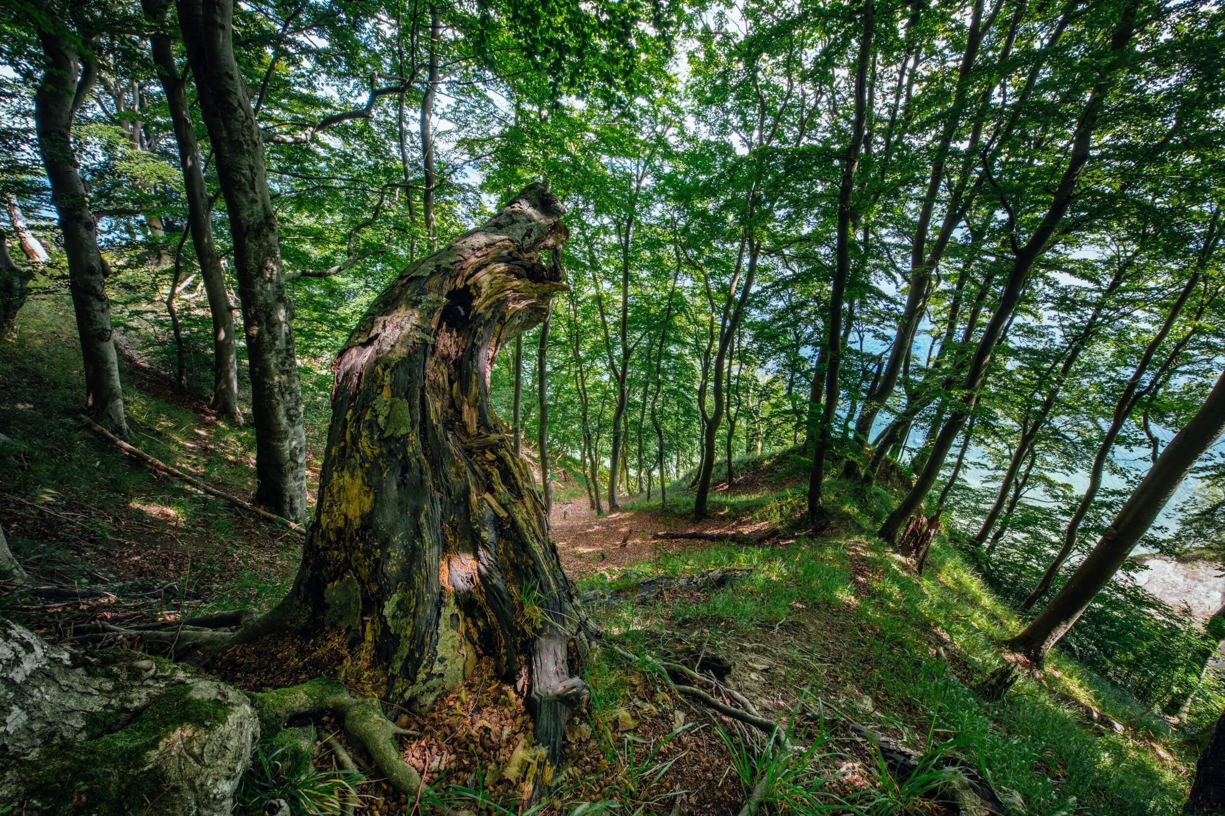 The on the island of Rügen is the largest contiguous beech forest on the Baltic coast. Due to its inaccessible location on the steep slopes, it has never been used for forestry and is the habitat of peregrine falcons and sea eagles, for example, as well as rare wild plants such as lady's slipper and giant horsetail.