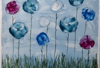 Keramiek uit de kruidentuin, Aquarellen en acrylschilderijen - landschappen en bloemen.
