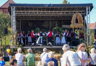 Het oogstfeest in de Fleesensee betekent een versierde optocht, een gevarieerd programma in de feesttent, regionale marktactiviteiten gevolgd door een feest.