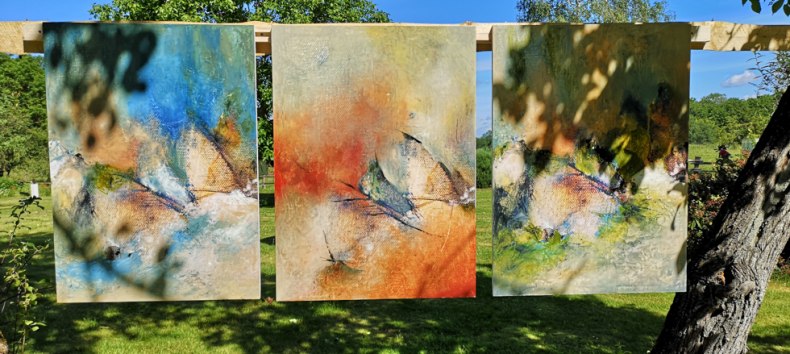Haar schilderijen worden gekenmerkt door een grote liefde voor experiment. Ze gebruikt natuurlijke materialen zoals zand, grind en houtkrullen, maar ook schildersdoek en restjes structuurbehang of karton als schilderoppervlak.