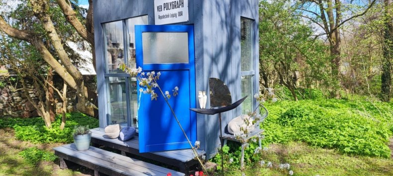 De tentoonstellingslocatie is een voormalige kruidenierswinkel. De geschilderde doeken worden gepresenteerd in de vorm van een inloophuis.
