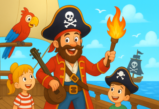 Ahoy en welkom aan boord van Chris de Flambö's kleurrijke piratenshow!
