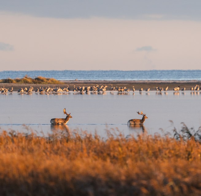 In de lente en herfst trekken vooral de trekvogels de aandacht van bezoekers. Op sommige avonden zijn er honderdduizenden , ganzen en zwanen vliegen over het Bodden-landschap - een fascinerend schouwspel dat ornithologen en vakantiegangers van alle leeftijden fascineert.