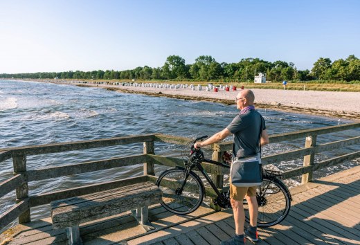 De beste manier om een vakantiedag te beginnen is met een koffie in de hand op de brug over het meer van Boltenhagen, met een panoramisch uitzicht op zee. Ook omdat je vanaf hier een prachtig uitzicht hebt op het strand van de badplaats en de bizarre kliffen. Maar dan is het tijd om op de fiets te stappen om de baai van Wismar wat beter te leren kennen. We fietsen eerst door de oorspronkelijke Klützer Winkel naar Zierow, dat tussen akkers en weilanden aan een stuk kust bij Eggers Wiek ligt. Het natuurlijke strand daar is perfect voor een lekkere verfrissende duik.