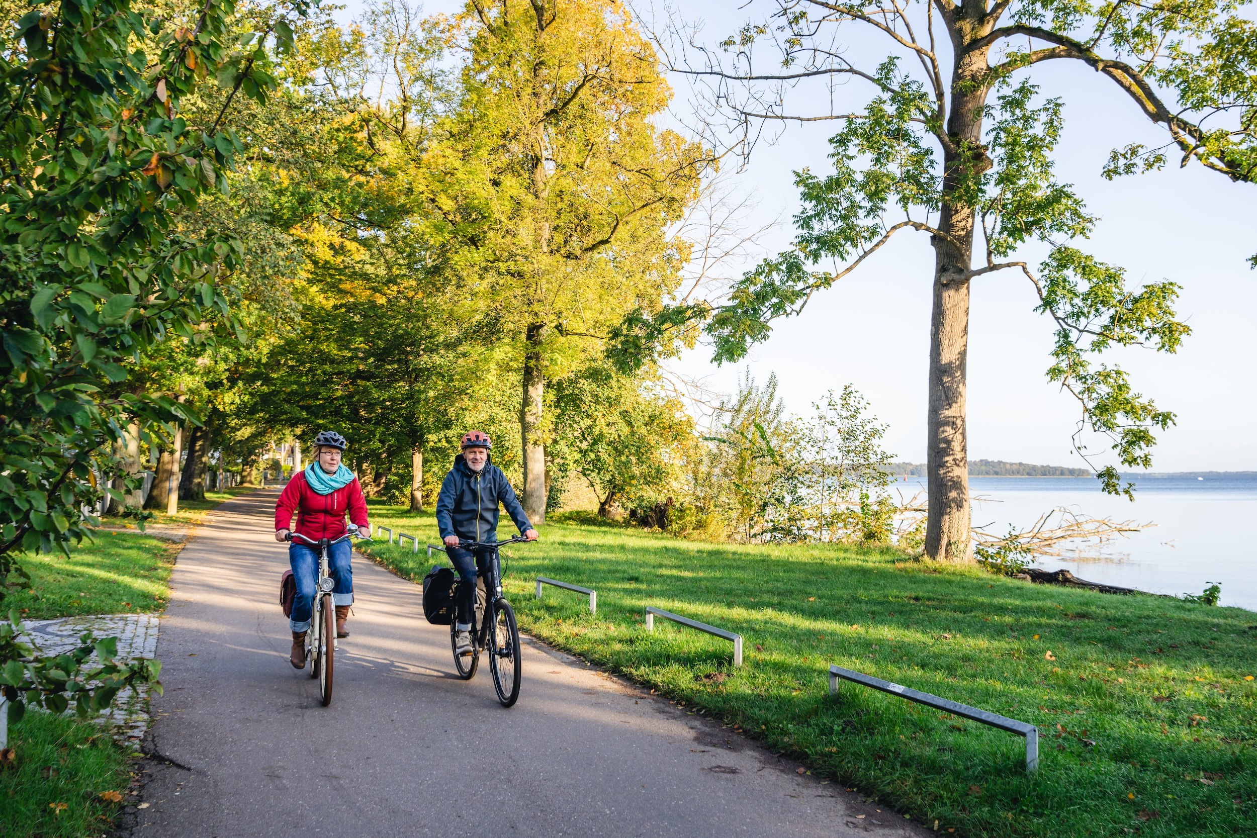 Het is vroeg in de ochtend als de fietsen de eerste meters van het station richting de oude stad van Schwerin rollen. De lucht is ijzig helder, de hemel blauw. De opkomende zon kleurt een paar vederlichte wolken roze en kondigt een gouden herfstdag aan. Als dat geen perfecte omstandigheden zijn voor een fietstocht!