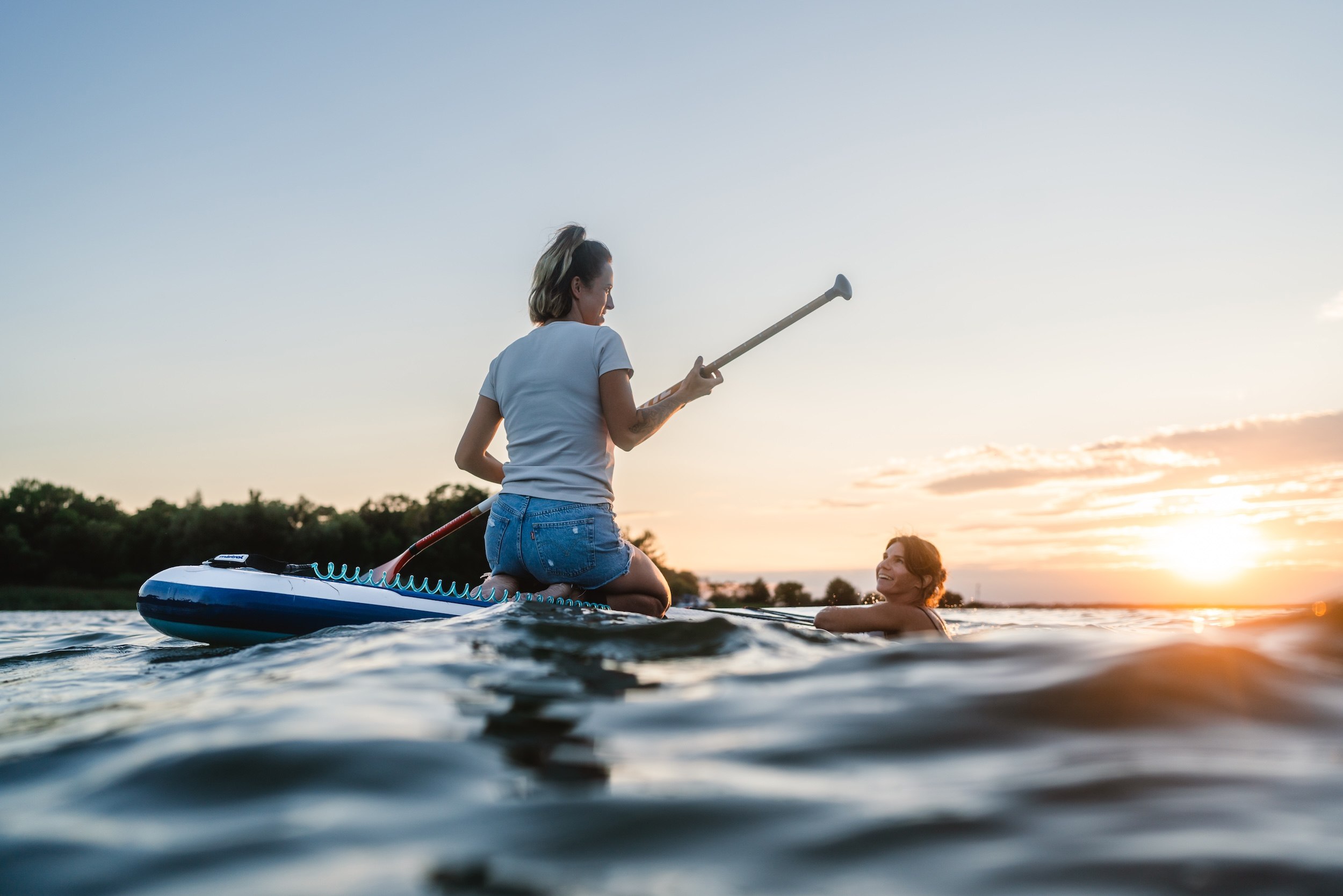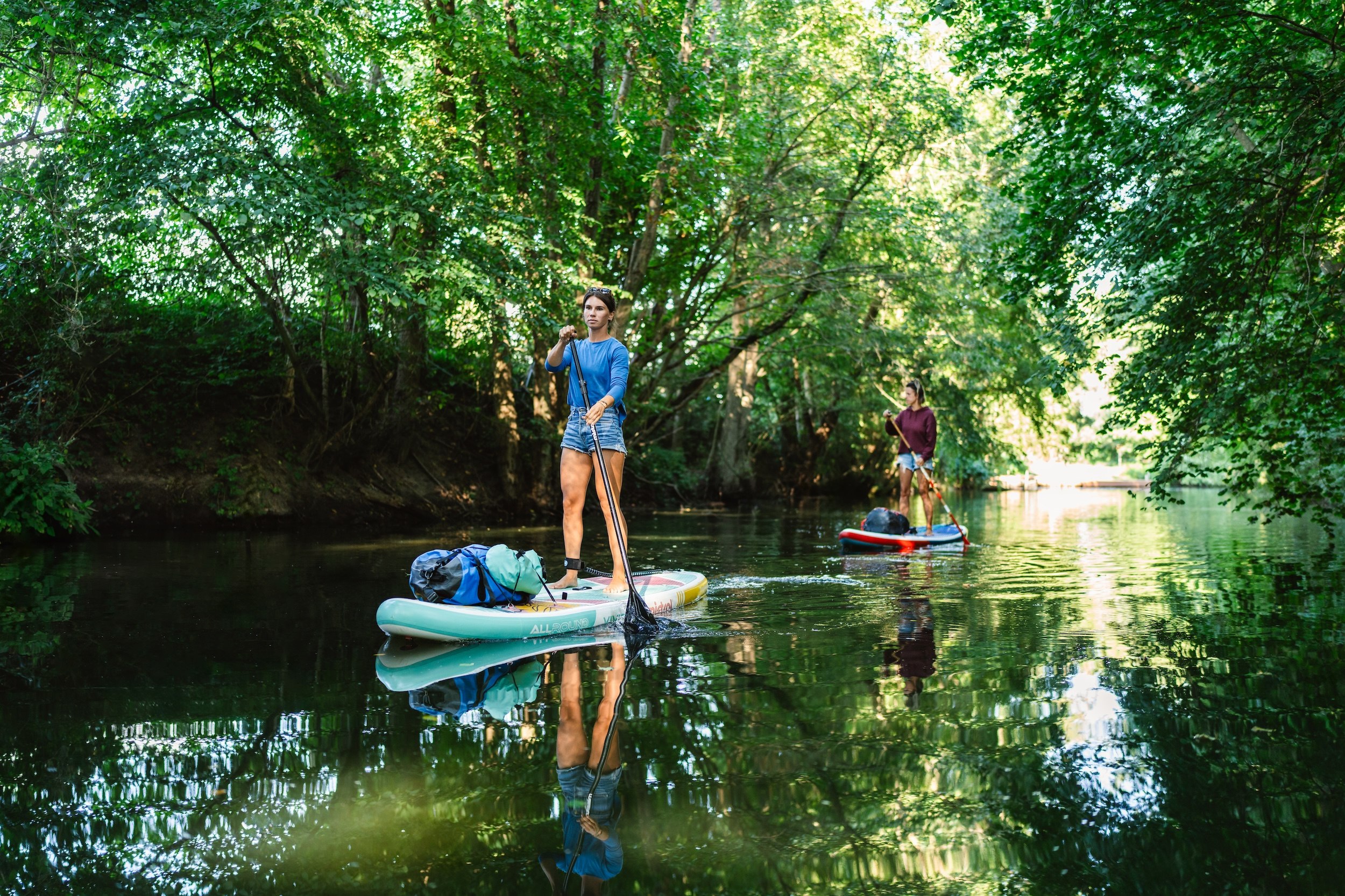 Susi trekt het stand-up paddle board (SUP) moeiteloos over het spiegelgladde, ondiepe water en zwaait zichzelf uiteindelijk, nog een beetje wiebelig, op het grote opblaasbare board. Luisa achter haar doet hetzelfde. Met deze trouwe metgezellen willen de twee dit weekend over de idyllische meren naar de Müritz peddelen. En eindelijk samen mooie herinneringen maken - weg van de stress van alledag.