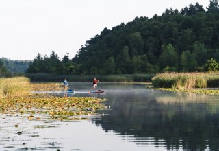 Wil je eind augustus genieten van de nazomer en nieuwe energie opdoen? Vrienden Luisa en Susi aarzelen niet lang en trekken naar het Mecklenburgse merengebied. Met bij zich: hun twee opblaasbare stand-up paddle boards. Het doel: een ander soort waterwandelen in Mecklenburg-Vorpommern. Een weekend reizen tussen Mirow en de Müritz. Stille duisternis ligt over de Granzower Möschen. Maar de lichte schemering die over de boomtoppen aan de overkant kruipt, geeft ons al een hint: Vandaag wordt een prachtige nazomerdag in het Mecklenburgse merengebied. Luisa doet de rits van de tent weer dicht en kruipt weer diep in haar slaapzak. Susi naast haar ligt nog heerlijk te slapen. Maar kort na zonsopgang vertrekken de twee vriendinnen noordwaarts vanaf de camping bij het kanostation Granzow, nadat ze gisteren vanuit Mirow waren gepeddeld. Maar niet met de kano.