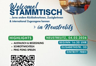 De Welcome Stammtisch Neustrelitz nodigt je van harte uit voor de Ping Pong Salon, Elisabethstraße 33, 17235 Neustrelitz, op woensdag 4 februari 2026 om 16:30 uur.