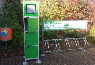 Gratis fietsenrekken en 4 oplaadboxen met ruimte voor elk 2 accu's