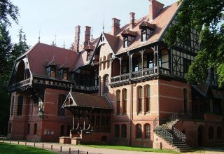 Het landhuis, dat in 1801 werd gebouwd voor de graaftak van de familie v. Blücher, ligt direct aan het Finckenmeer.