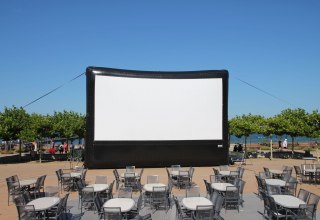 Openluchtbioscoop op een groot scherm voor het hele gezin. De film begint zodra het donker genoeg is.