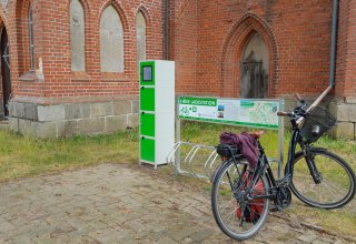 E-bike oplaadpunt bij de Pantlitz fietskerk
