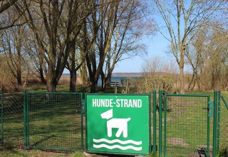 Omheind hondenstrand met directe toegang tot het water aan de Fleesensee.