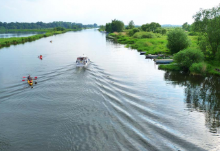 De rustplaats van de Lassan waterwandeling ligt aan de rivier de Peene.