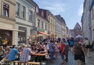 Rynek w Teterow jest centralnym punktem historycznego centrum miasta. Na środku placu znajduje się żeliwna tablica autorstwa artysty Güntera Kadena, która wyznacza geograficzny środek Meklemburgii-Pomorza Przedniego. Neobarokowy ratusz został oddany do użytku w 1910 roku. Tuż przed nim znajduje się symbol miasta - fontanna szczupaka. Zaprojektowana przez rzeźbiarza Plauera, profesora Wandschneidera , została oddana do użytku w 1914 roku i przypomina o psotach dawnych mieszczan. Z tego powodu mieszkańcy Teterow nadal tradycyjnie obchodzą święto szczupaka w weekend poprzedzający Zielone Świątki - święto mieszkańców tarczy meklemburskiej.